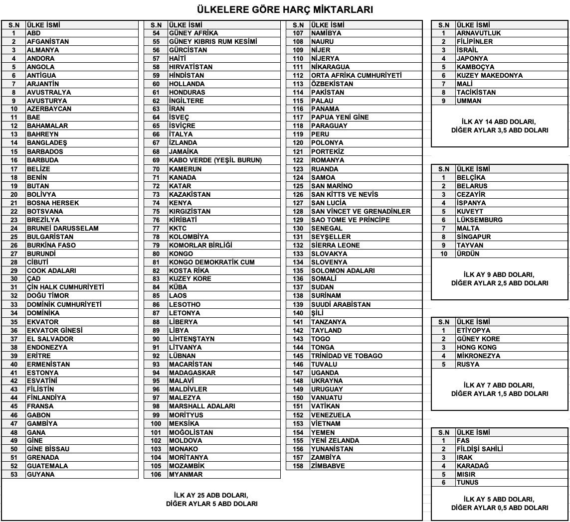 • 🧾 Ülkenin dahil olduğu harç grubu (A, B, C, D, E veya istisnai grup)
